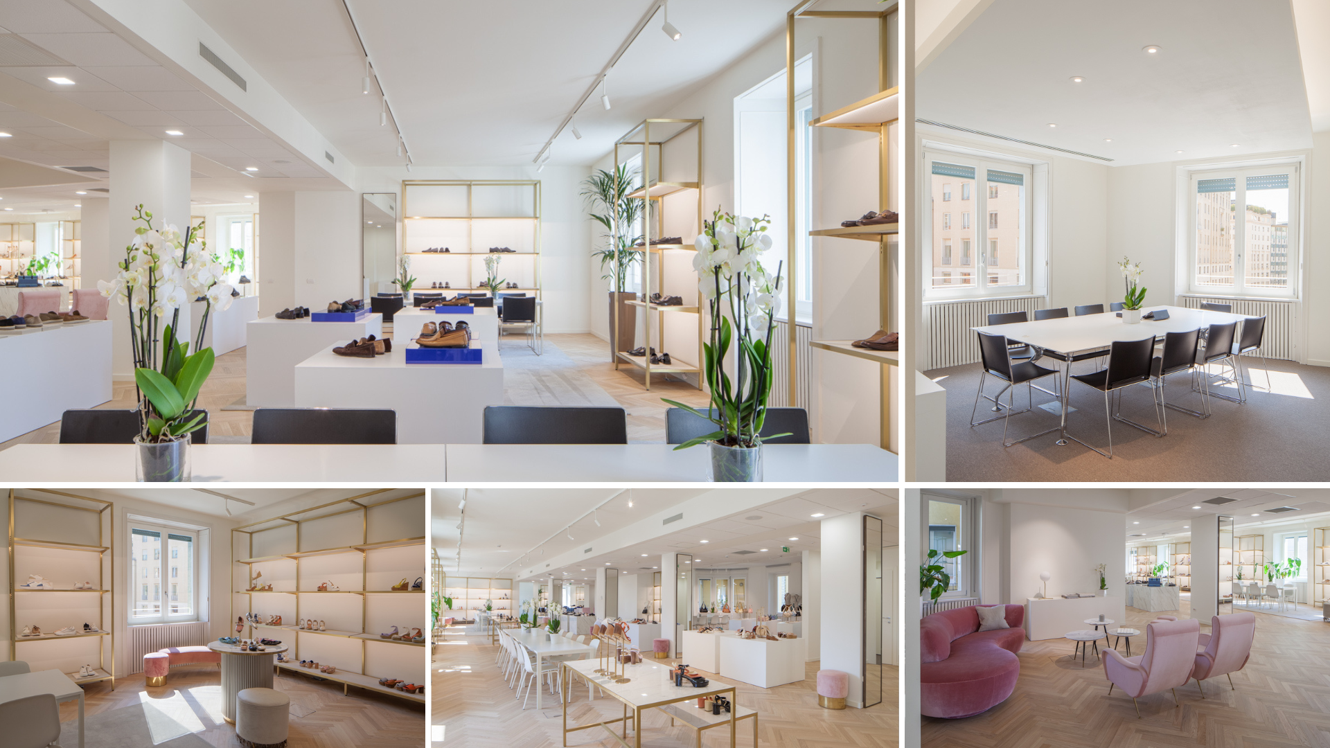 The herringbone parquet floor is a signature feature of the layout of Stuart Weitzman's showrooms and – in a nod to its New York counterpart – the showroom follows the latest luxury trends that see craftsmanship take on a central and aesthetic importance.